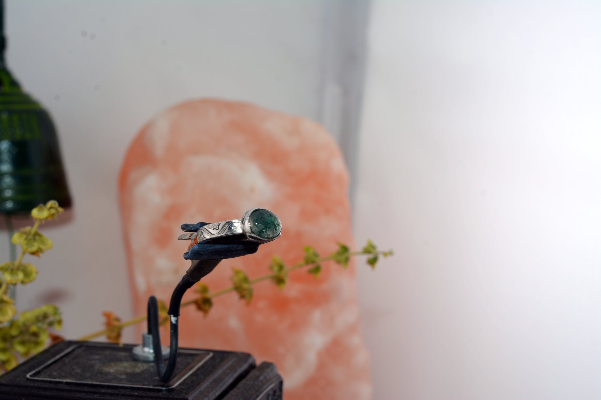 Stone: Moss Agate cabochon (natural, soft green inclusions)