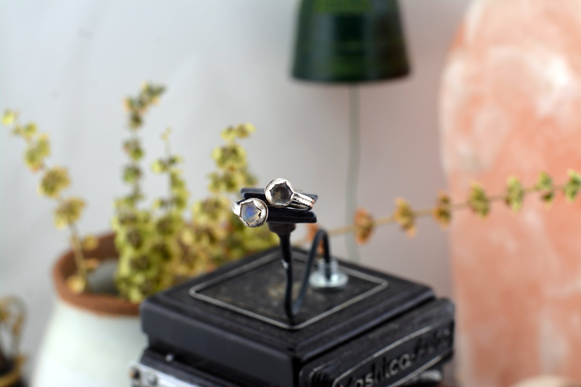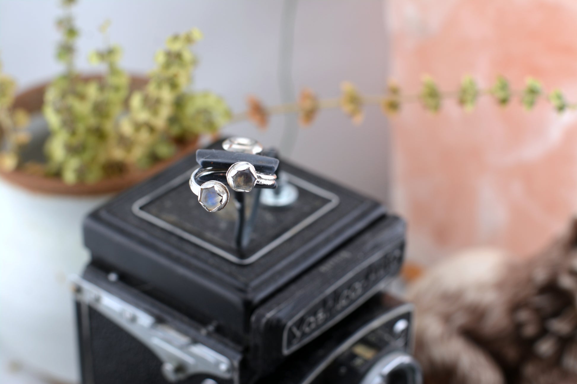 Symbolism: Two moonstones orbit side by side — lovers, sisters, soulmates